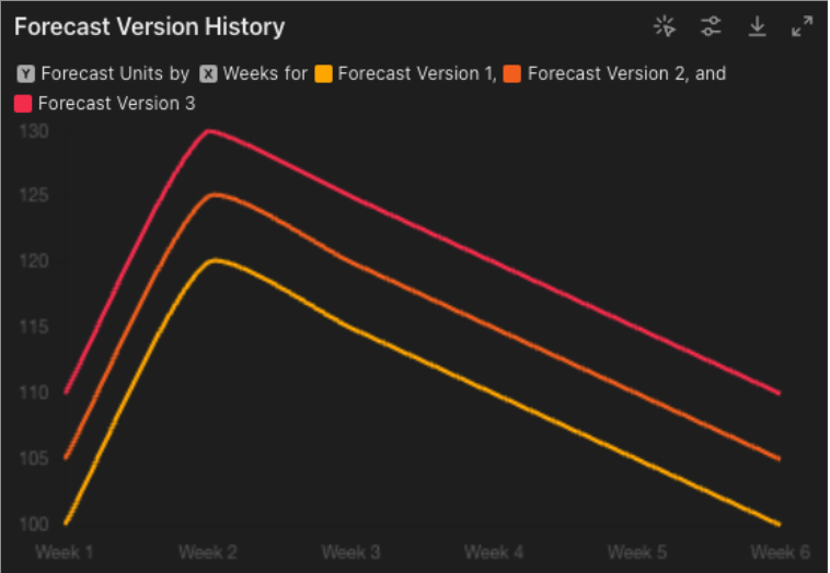 Given that each forecast is regenerated weekly, a brand gains multiple insights into how future periods might unfold. This frequent update cycle allows for continuous refinement of predictions, providing a dynamic view of demand. If an item is gaining momentum, these weekly forecasts can reveal directional trends, highlighting shifts in consumer interest and buying behavior. By closely monitoring these evolving trends, brands can respond more swiftly to market changes, adjust their strategies, and ensure they are well-prepared to meet increasing demand. This proactive approach not only helps in capitalizing on emerging opportunities but also in mitigating potential risks associated with rapid changes in the market.